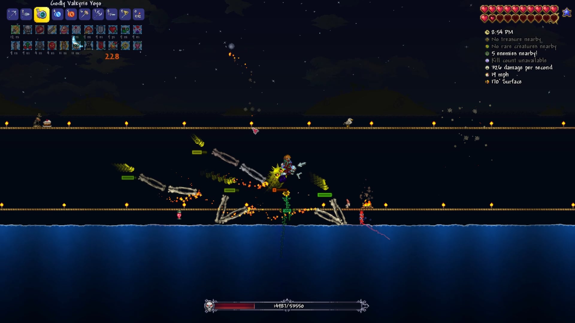 Ugh i cant remember last time i saw someone uses a yoyo, why didnt you shoot the yoyo when the boss was afar.do you use the new accesory?what armor did you use i didnt realy notice