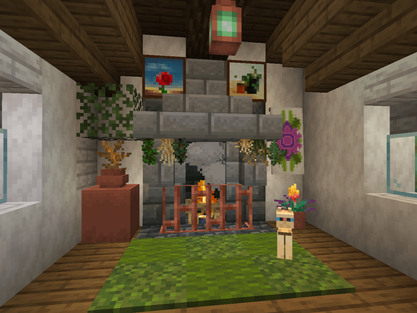 The herbs are hung using invisible armor stands with Statues datapack from Vanilla Tweaks. It was a bit tricky to place them so close together, but I’m really happy with how natural they ended up looking.