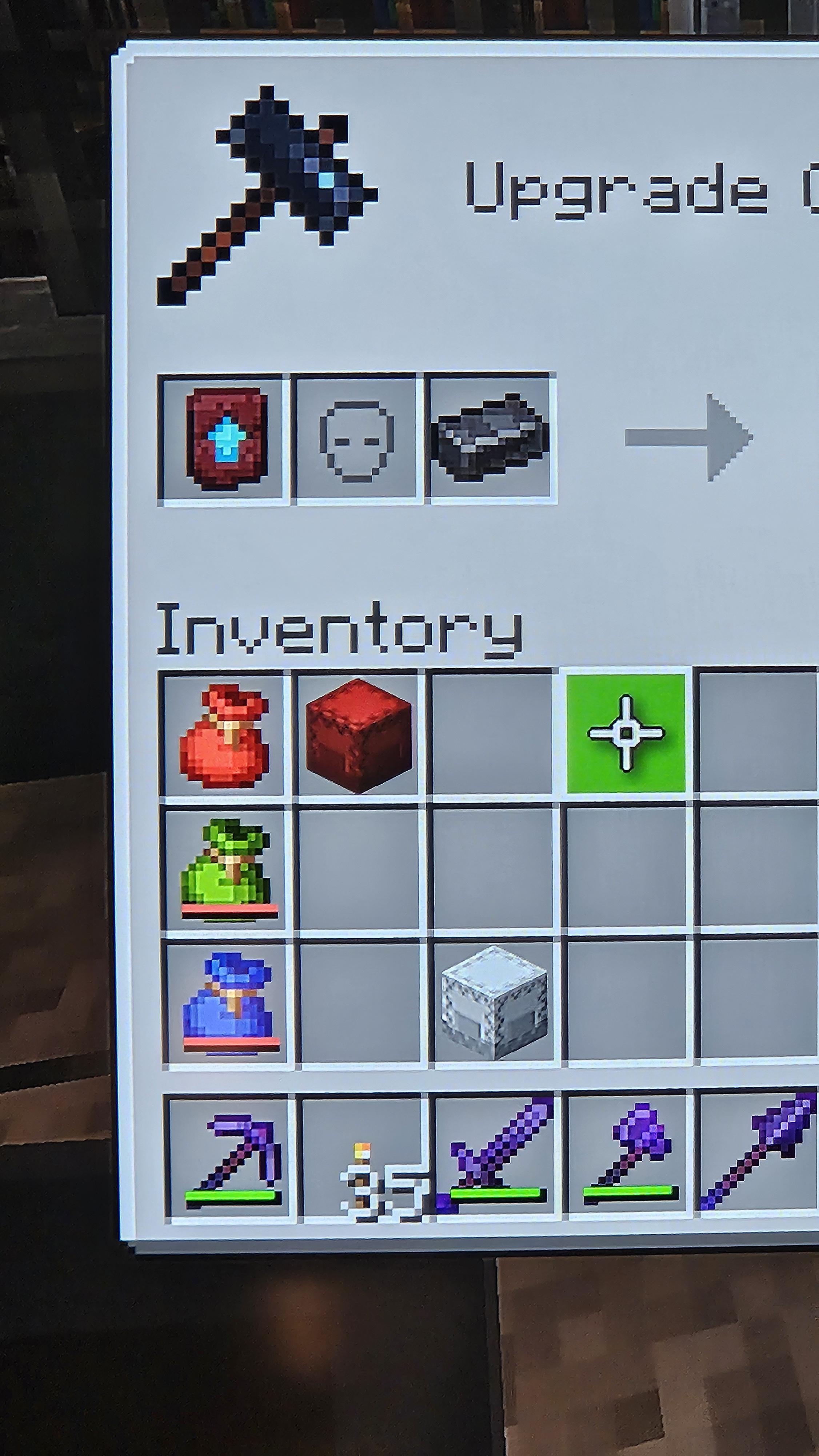 This icon is also used in the inventory for equip helmets, mob heads, etc. That means (in the smithing table) you can upgrade every diamond armor piece and tools with netherite, and trim every armor piece from leather to netherite.