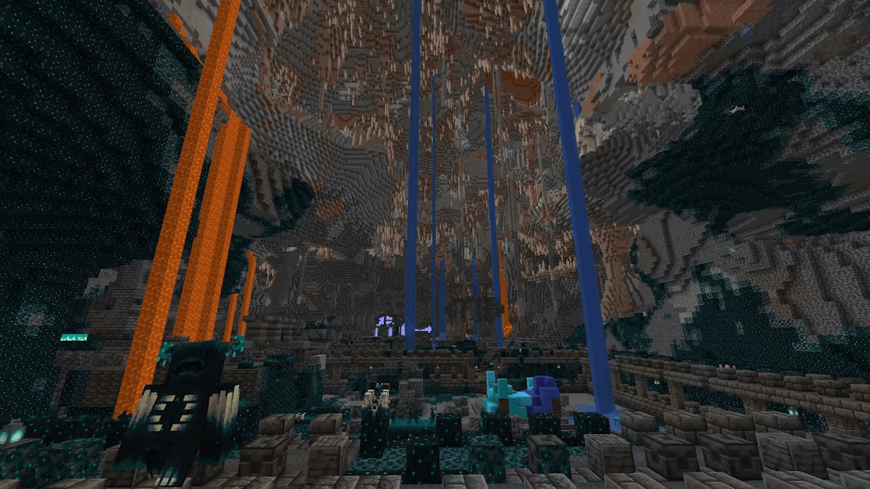 I kind of want to build a base in a hollow mountain deep underground, preferably with an ancient city at the bottom, and maybe even visible from the surface if that's possible. I don't really care about the surrounding area, maybe a village nearby. I'd also prefer if it wasn't too far from spawn, maybe about 2-5k blocks out. Thanks!