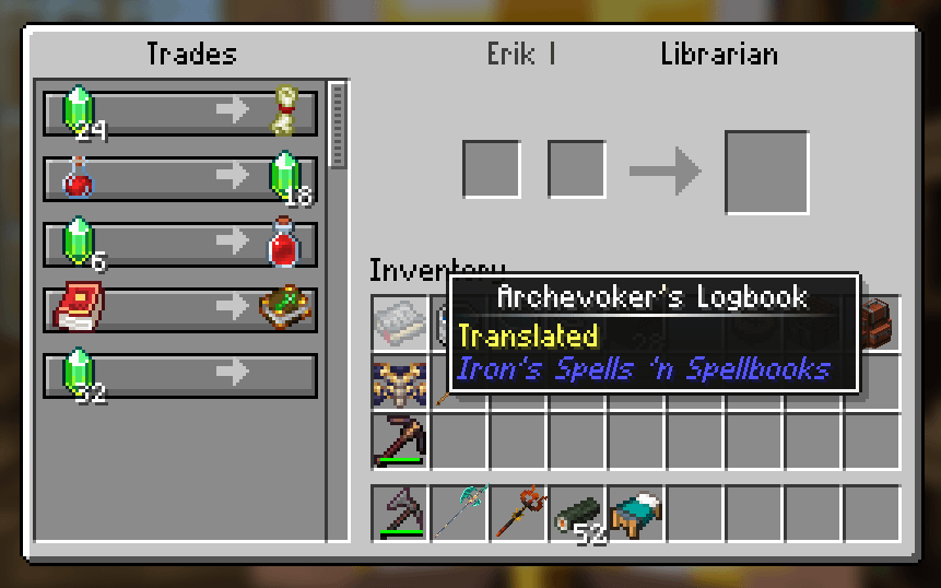 I translated the logbook from an evoker fort using the trapped villager, then found a priest with the village bible trade, but the item he needs (translated research journal by archevoker) doesn't match the one I have (shown in the picture). Do I just have the wrong item or is there some clash with the different mods in this modpack? Is there any way I can get the villager bible? Thanks.