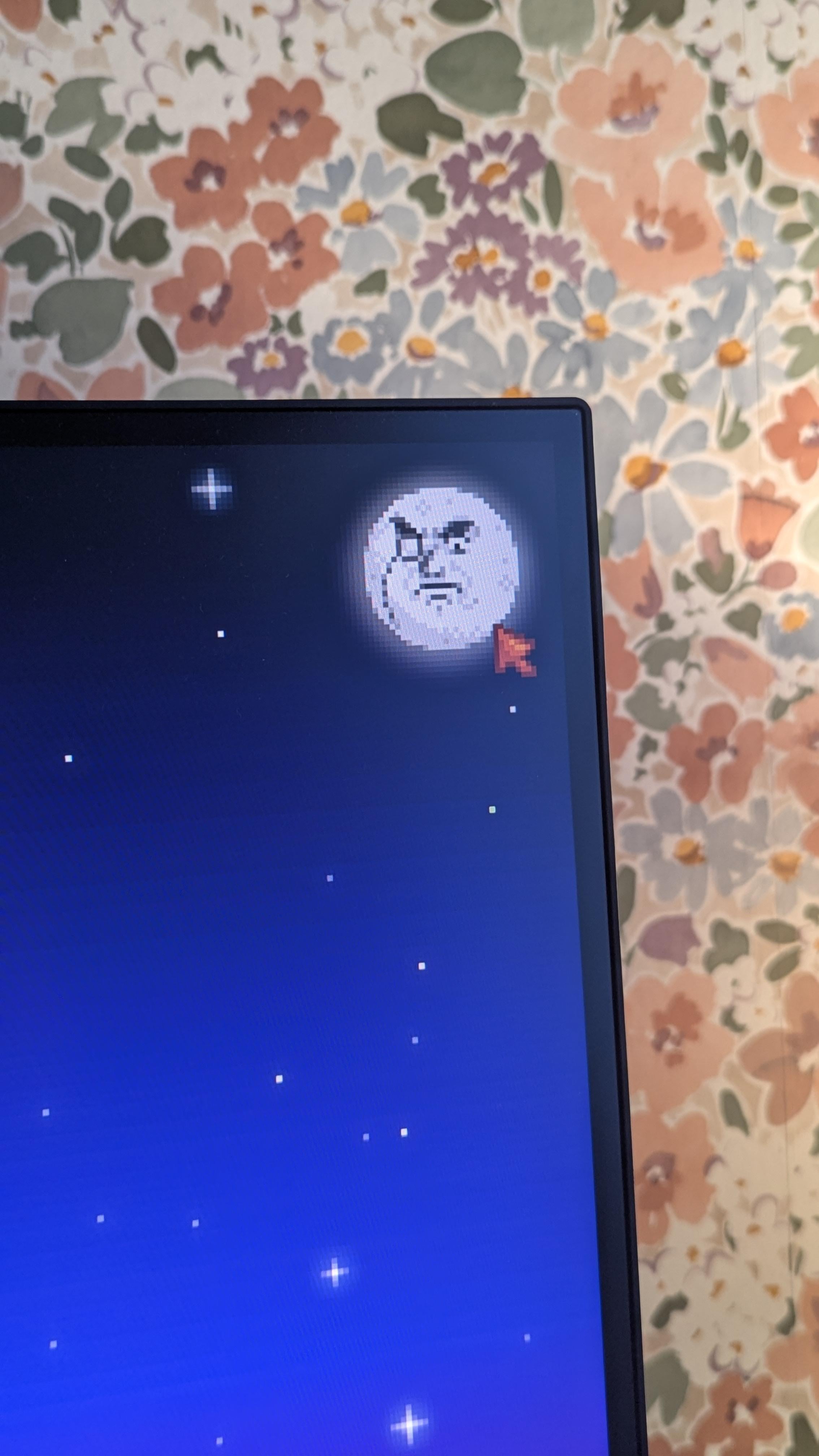 GreenMoth11 on April 14, 2026 5:32 pm The moon appears during a full moon, and if you click on it a certain way, the moon man appears. It’s just an Easter egg of the game. so long story short, yes, you are cursed.