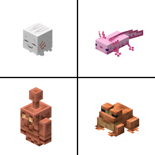 Saving frogs for froglights.. Happy Ghast makes building easier, but it’s not impossible without, Copper Golems make sorting non-stackables easier, but allays can do it too, and Axelotls do nothing but kill themselves :/