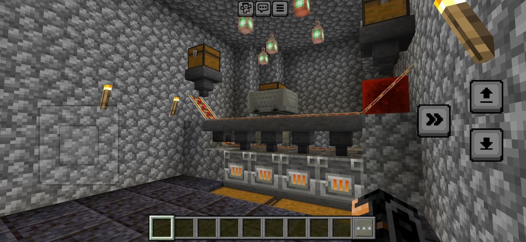 Side note since you can’t see them that well: in image 7, the hoppers are connected to Crafter blocks to auto-craft full sets of iron armor. They’re powered by a simple redstone chain, which is triggered by the Detector Rail in the previous image.