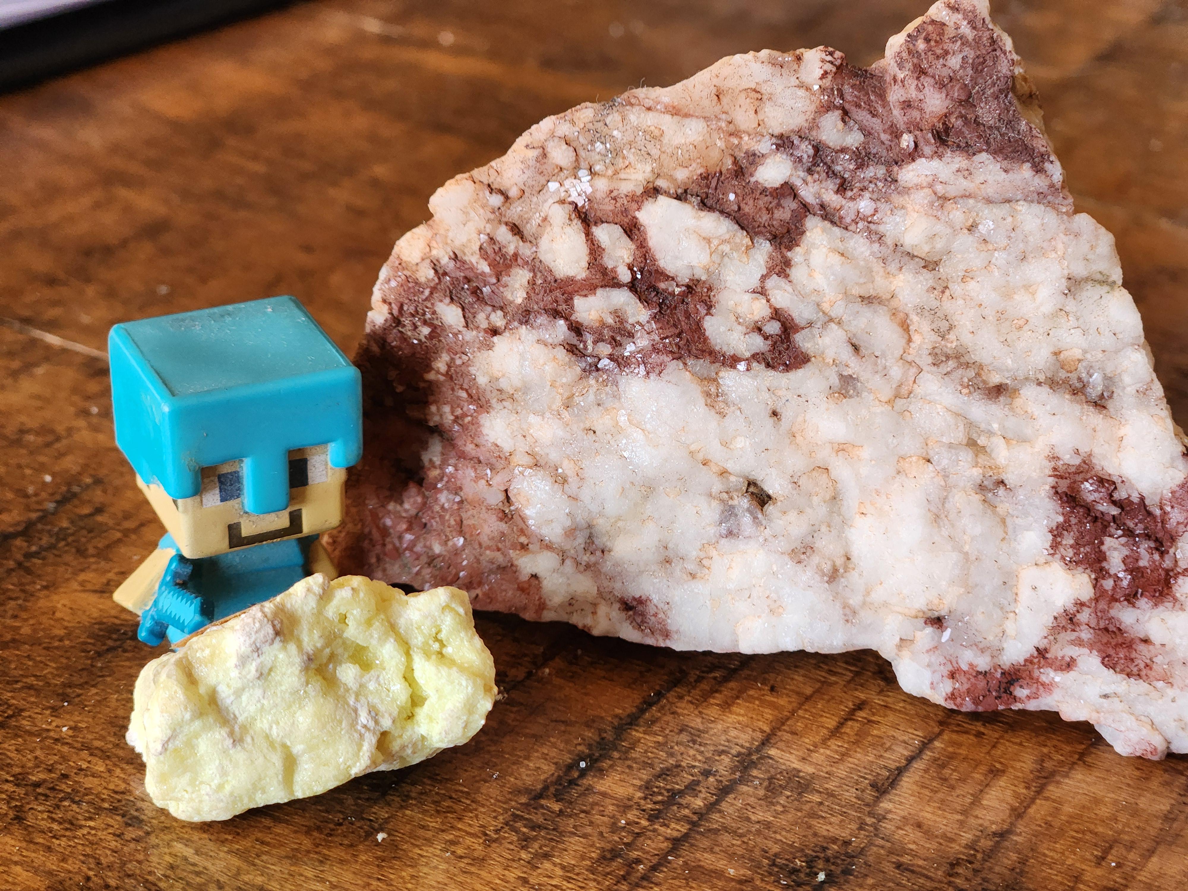 Its_BigSteve9388 on April 15, 2026 1:56 am Steve is acting like he wants to break the sulfur block. But he should use a pickaxe instead of a sword.