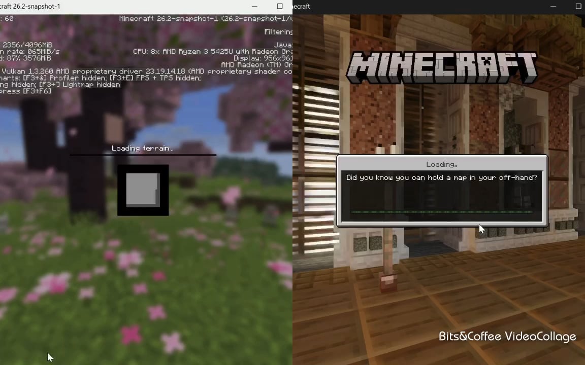 Java with Vulkan looks way smoother here but Bedrock still loads cleaner overall.