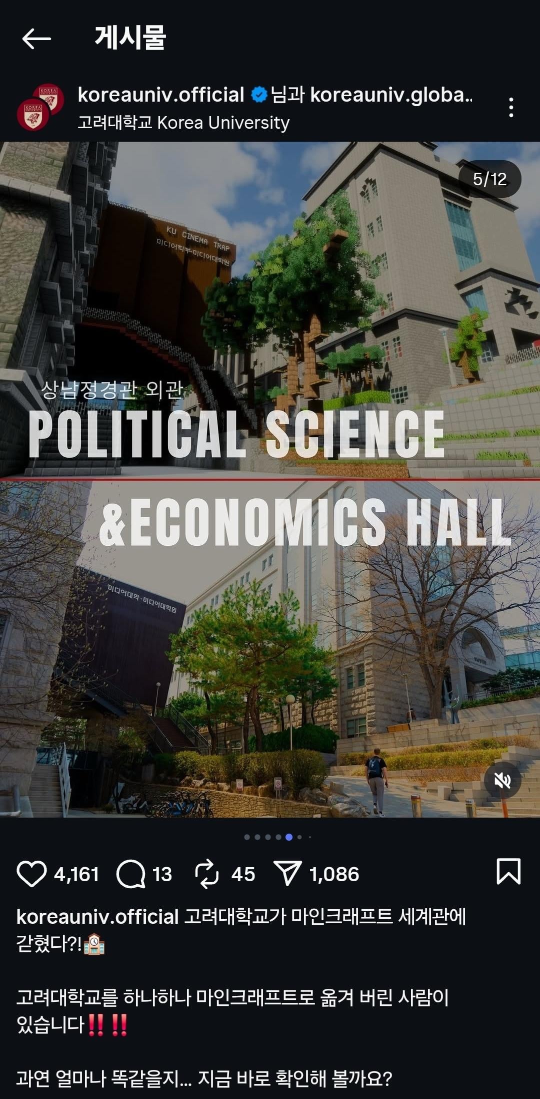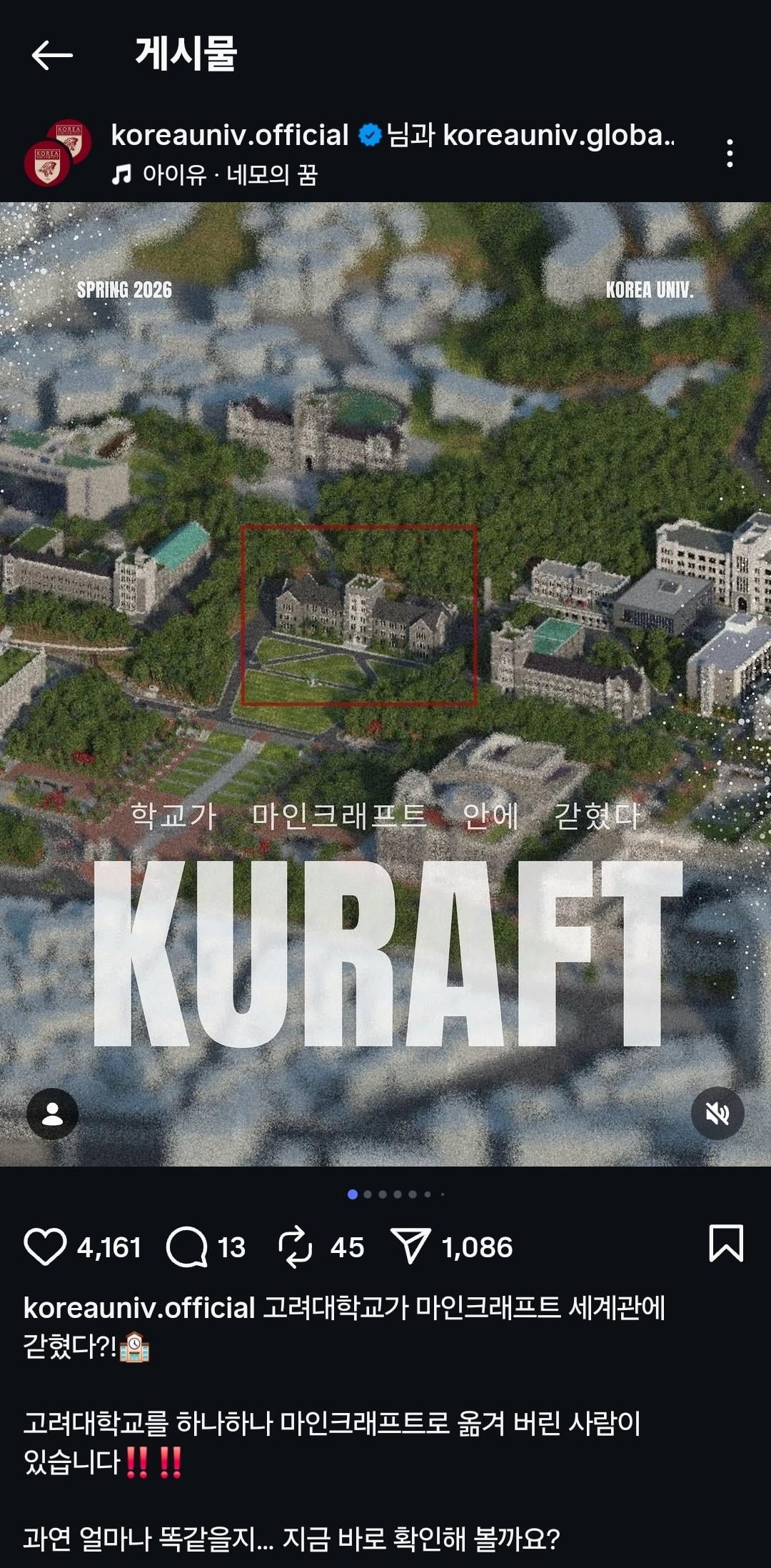 I've been working on a project called 'KURAFT' to recreate my university, Korea University, in Minecraft.