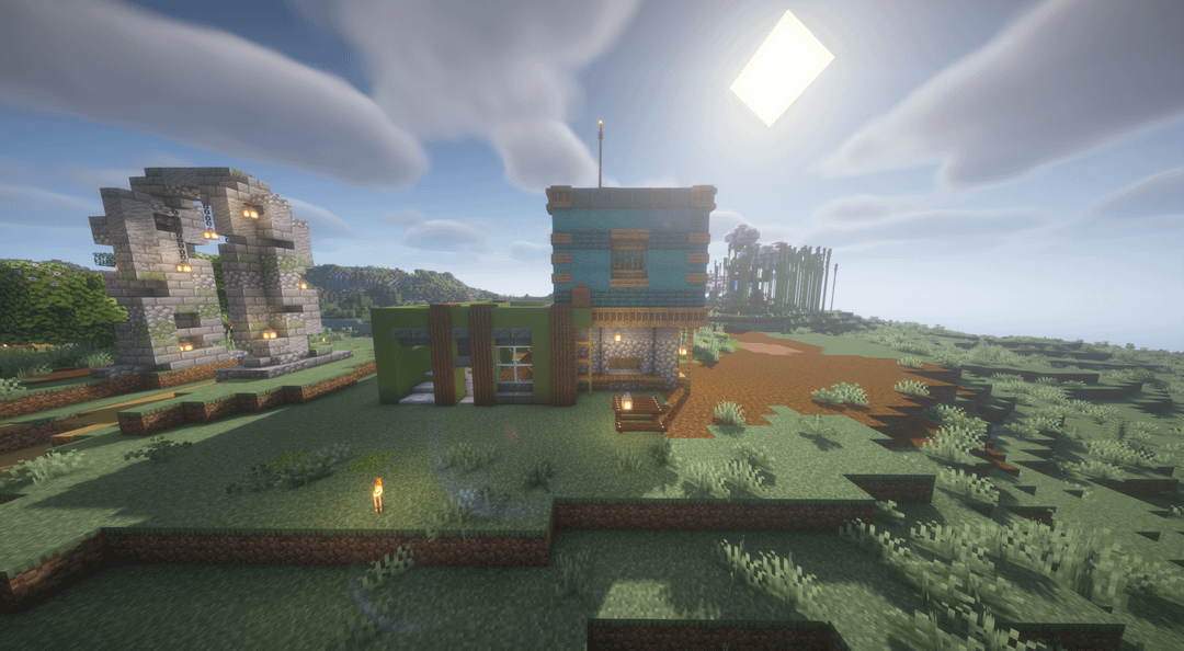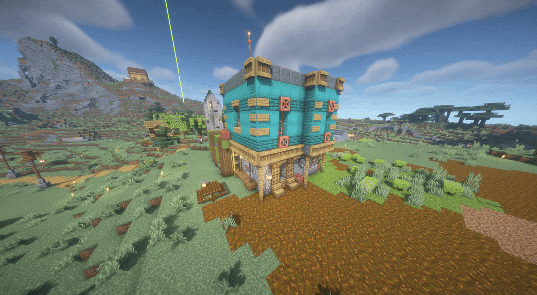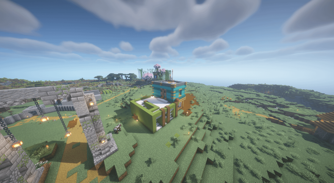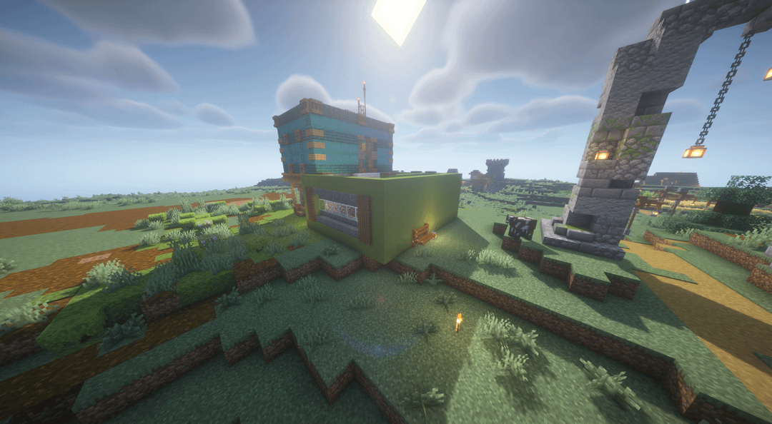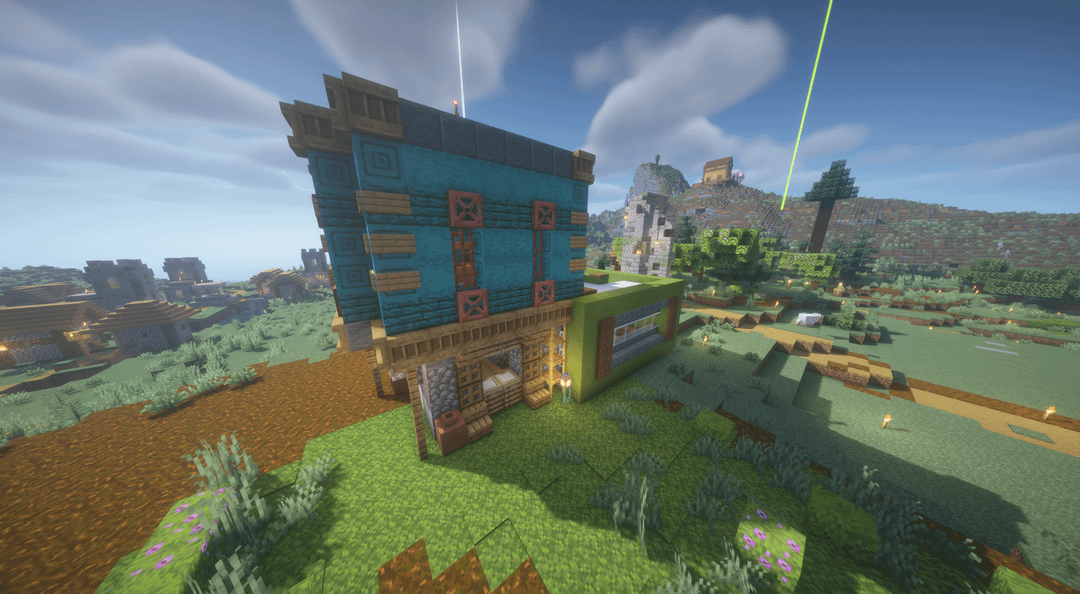 Tried building in a "cluttered" style (idk what to call it), don't exactly know what to do with the flat top of the green side. Any critiques or suggestions? by lastery11 Minecraft Minecraft Builds