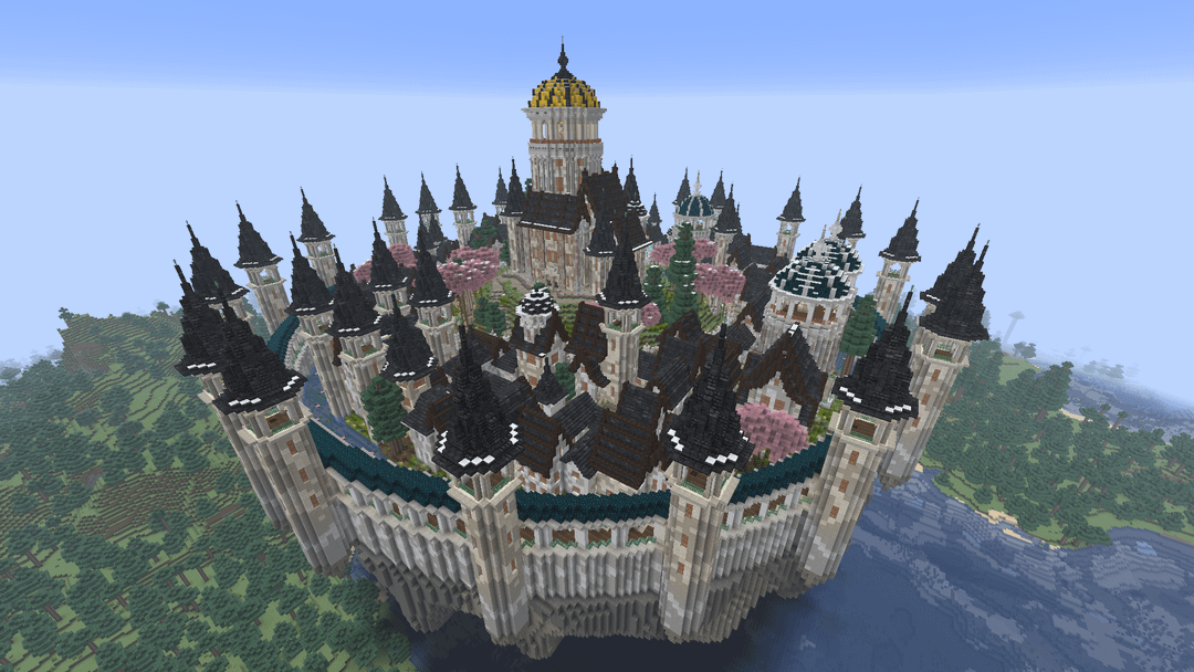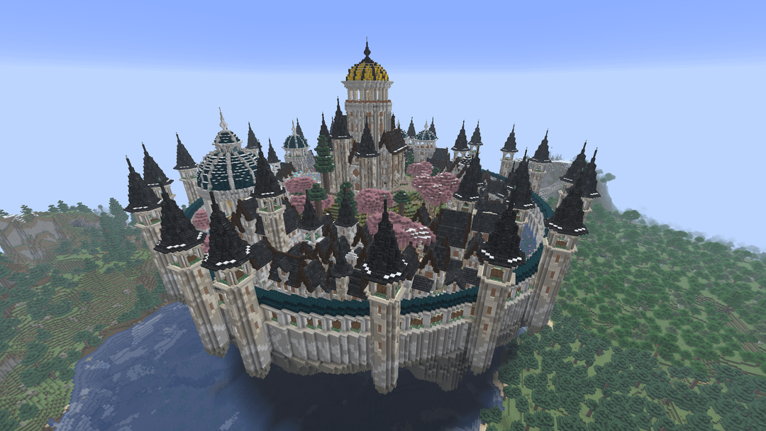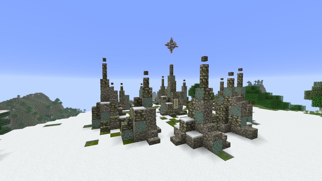 The central building is the mage tower of the Archmage. The big dome covers a circular meeting place which serves as the town main square. The building with two domes is the library and the final domed structure is the town hall. The city is only accessible by flying (I was inspired by house Telvanni dunking on anyone who cant use levitation, I find it hilarious), but there is also a hidden wayshrine (Inspired by the ancient Falmer, this is one of my snow elf towns) in a form of stone circle which can take non mages inside if necessary.