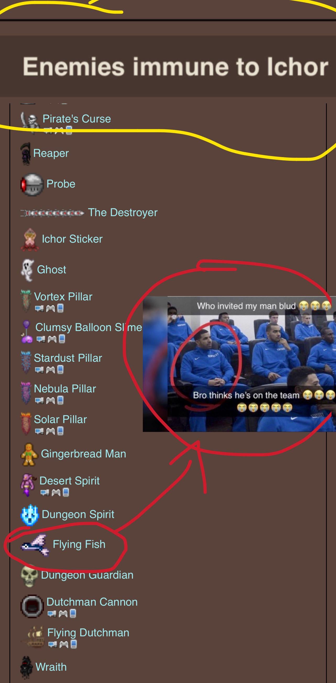 Others are at least ghosts or some otherworldly monsters. The flying fish is so random by ServitorOfTheForg Terraria