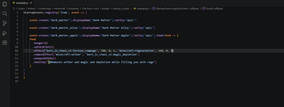 Having an error creating a food item in KubeJS. Can someone tell why did it happen? by Creasko Minecraft Minecraft Java Edition Modded Minecraft