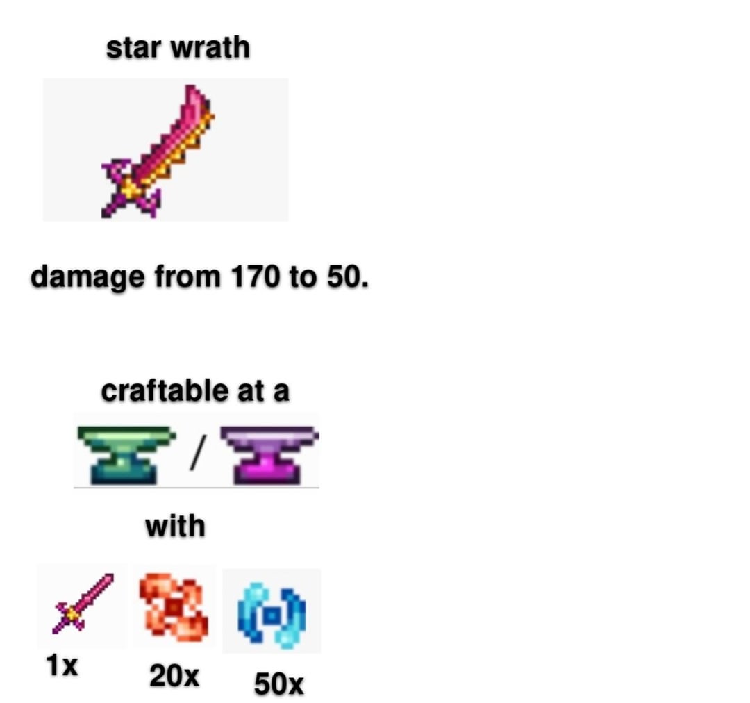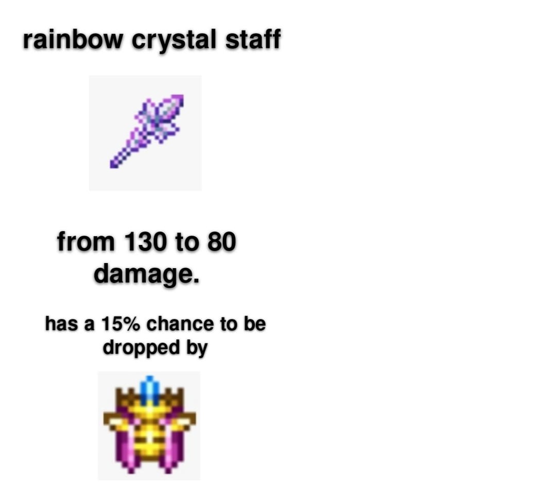 I also decided to add a melee and summoner weapon and rework star wrath and rainbow crystal staff to be obtained earlier. by Relative-Monitor1745 Terraria