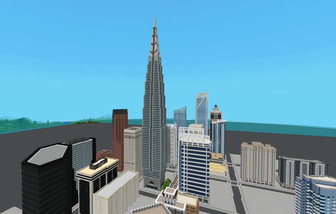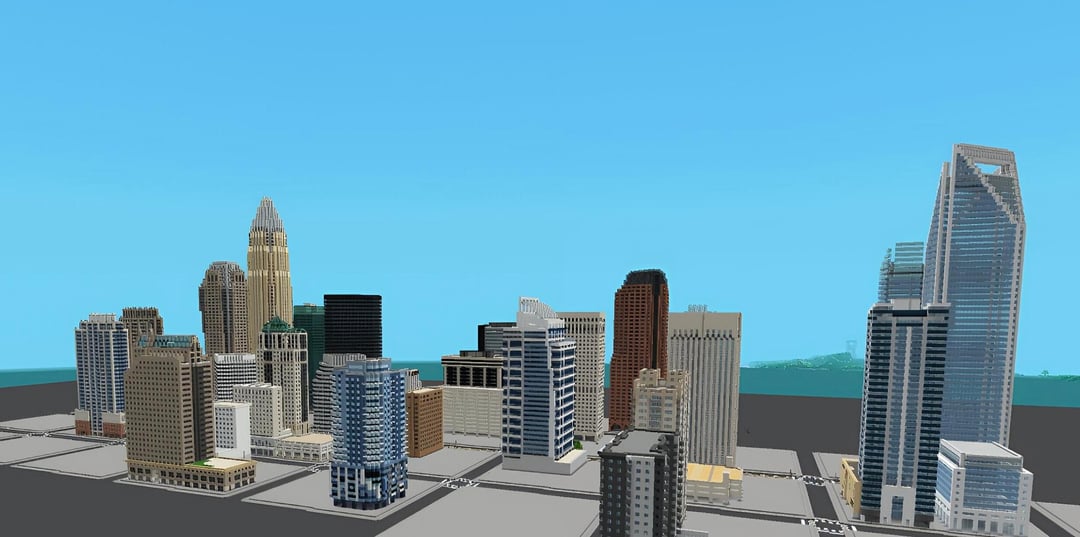 The really tall building was a canceled project in 1999 called Four First Union Center. I built it because i wondered what it would've looked like if it was built. by DepartmentOwn9665 Minecraft Minecraft Builds