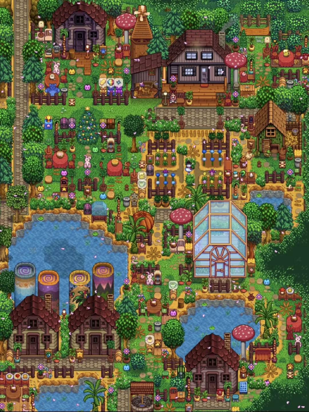So I started reworking it into something way more cozy and decorative, and now it finally feels like a place I’d actually want to live in. I added a bunch of little sitting spots, mushroom decor, flowers, ponds, and more random detail in between the “functional” areas.