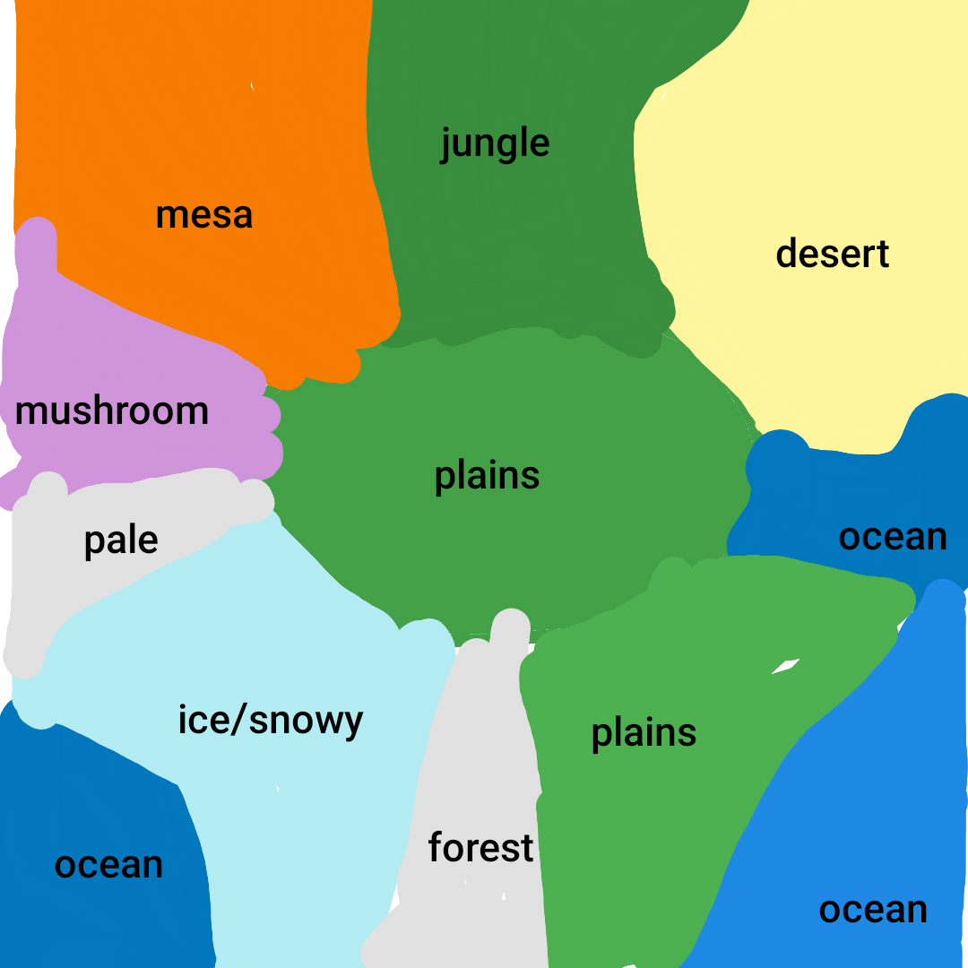Mushroom Fields can’t generate other land biomes together, but, Mushrooms are located in Dark Forests.