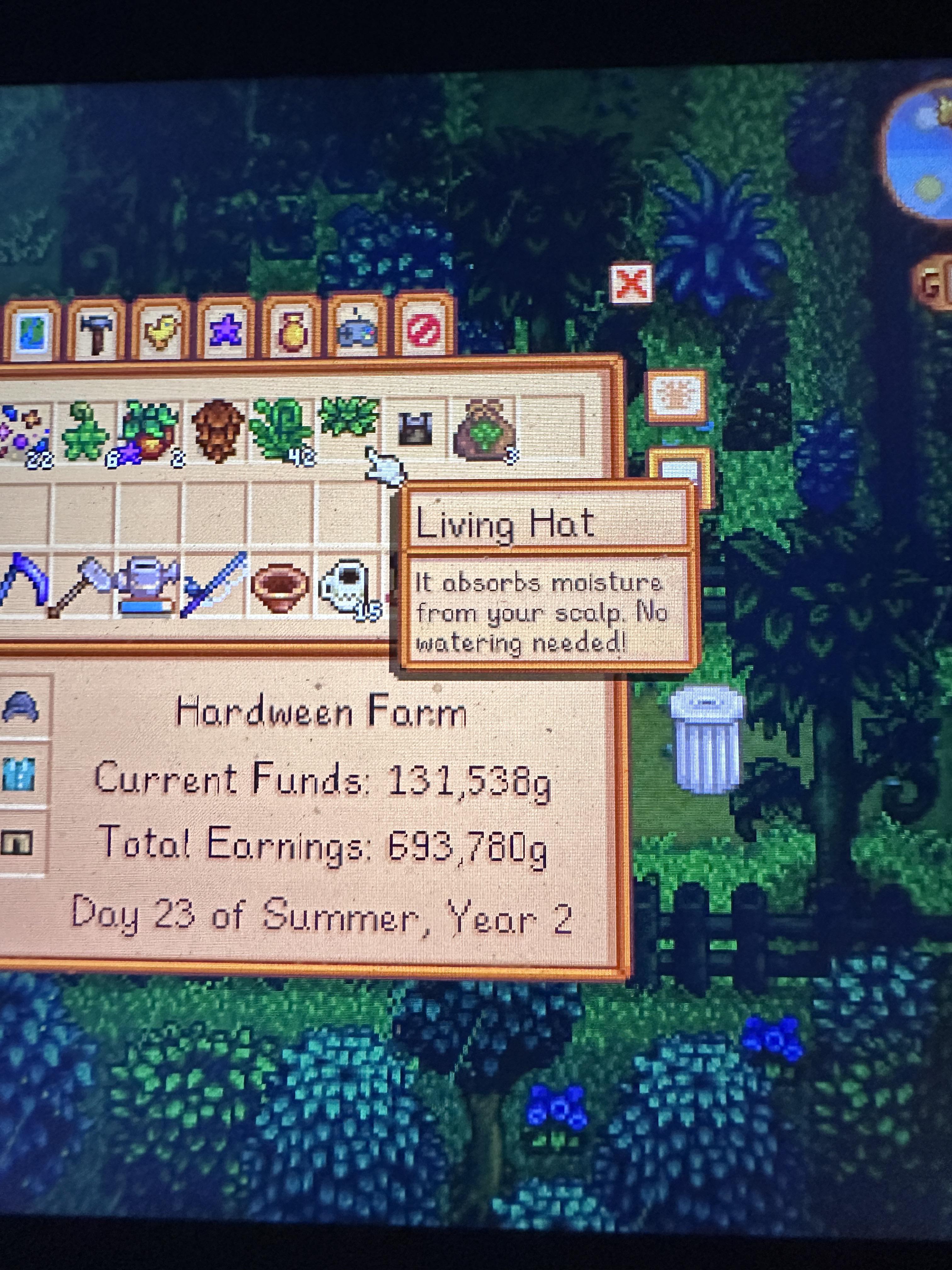 FINALLY!!! After years of playing and several playthroughs, I got this on a lucky green rain day, and I will never take this off again! by Jinja_Kuma1001 Stardew Valley