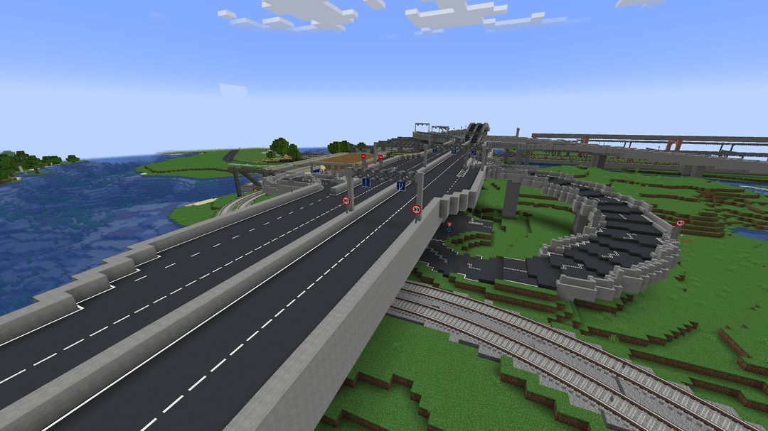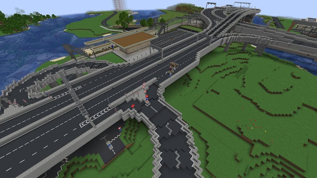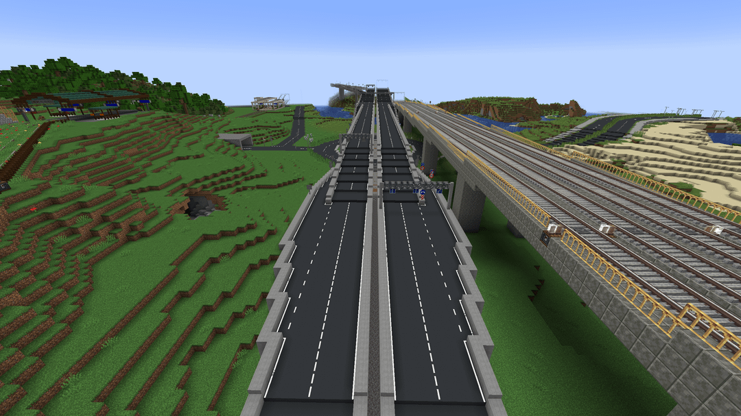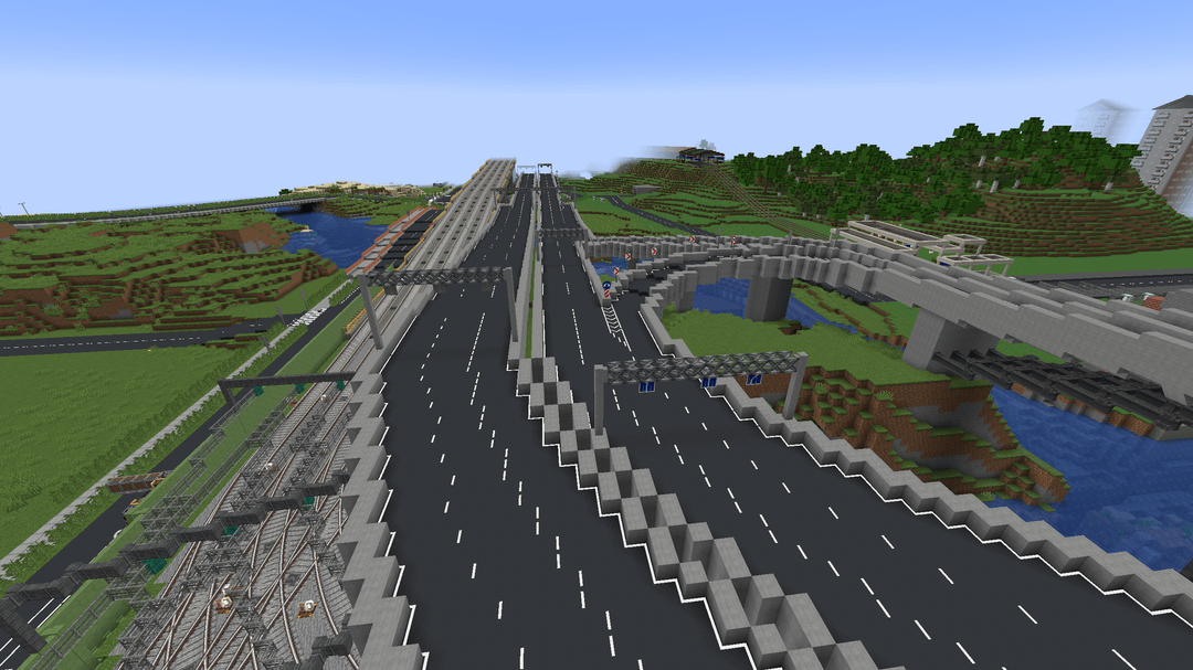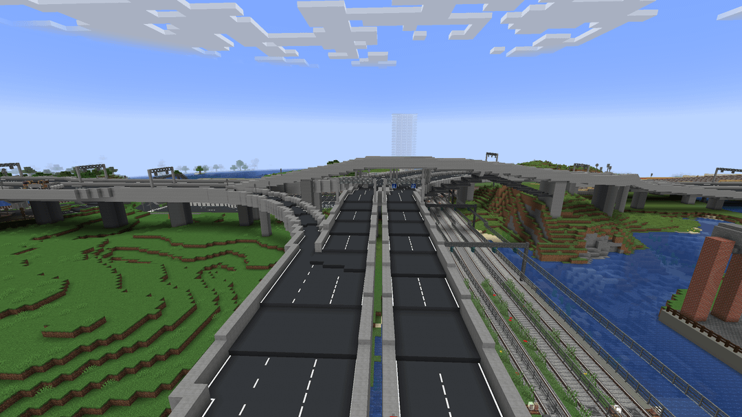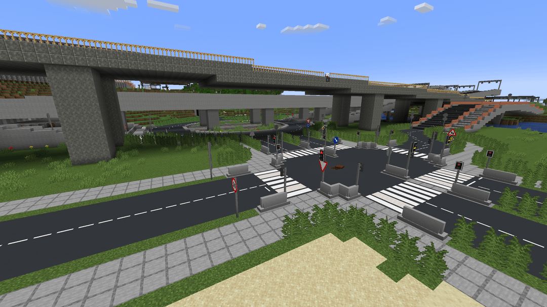 This is a big city with working public transit that me and my friend have been working on for several years by now. It uses a bunch of mods, for example Ultimate Car Mod, TrafficCraft and the Create Mod of course!