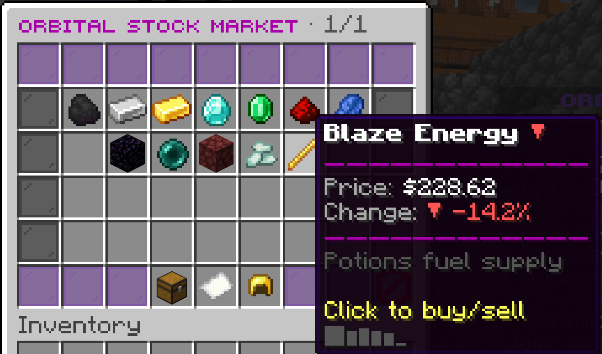 just wanted to show off my stock market plugin I made for my server: it's fully functional, has three pages including past purchases and sales and updates every 5 minutes! Let me know what y'all think about it.