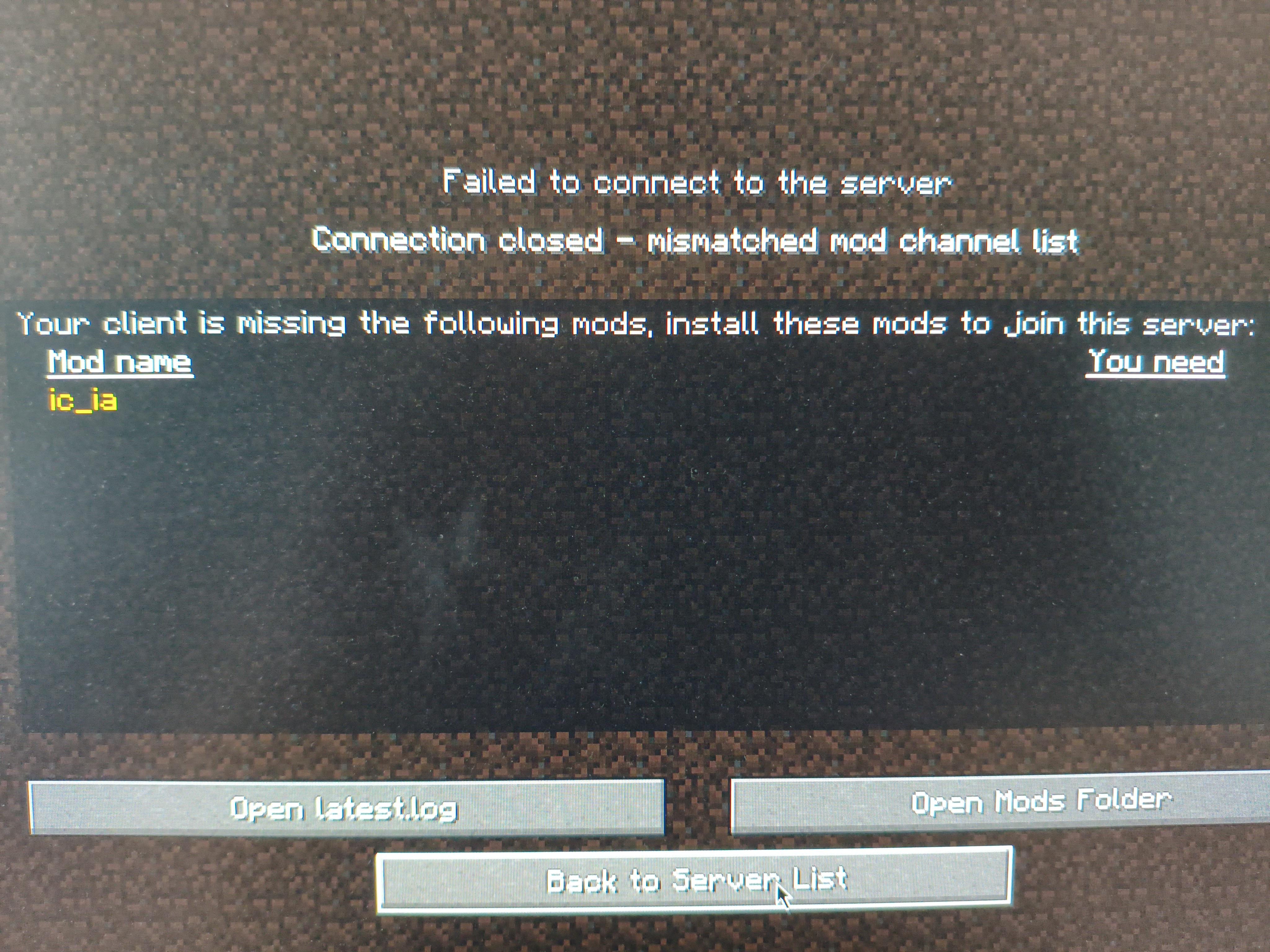 Can’t connect to the server because mod list is apparently mismatched. Can’t find the mod it says I lack