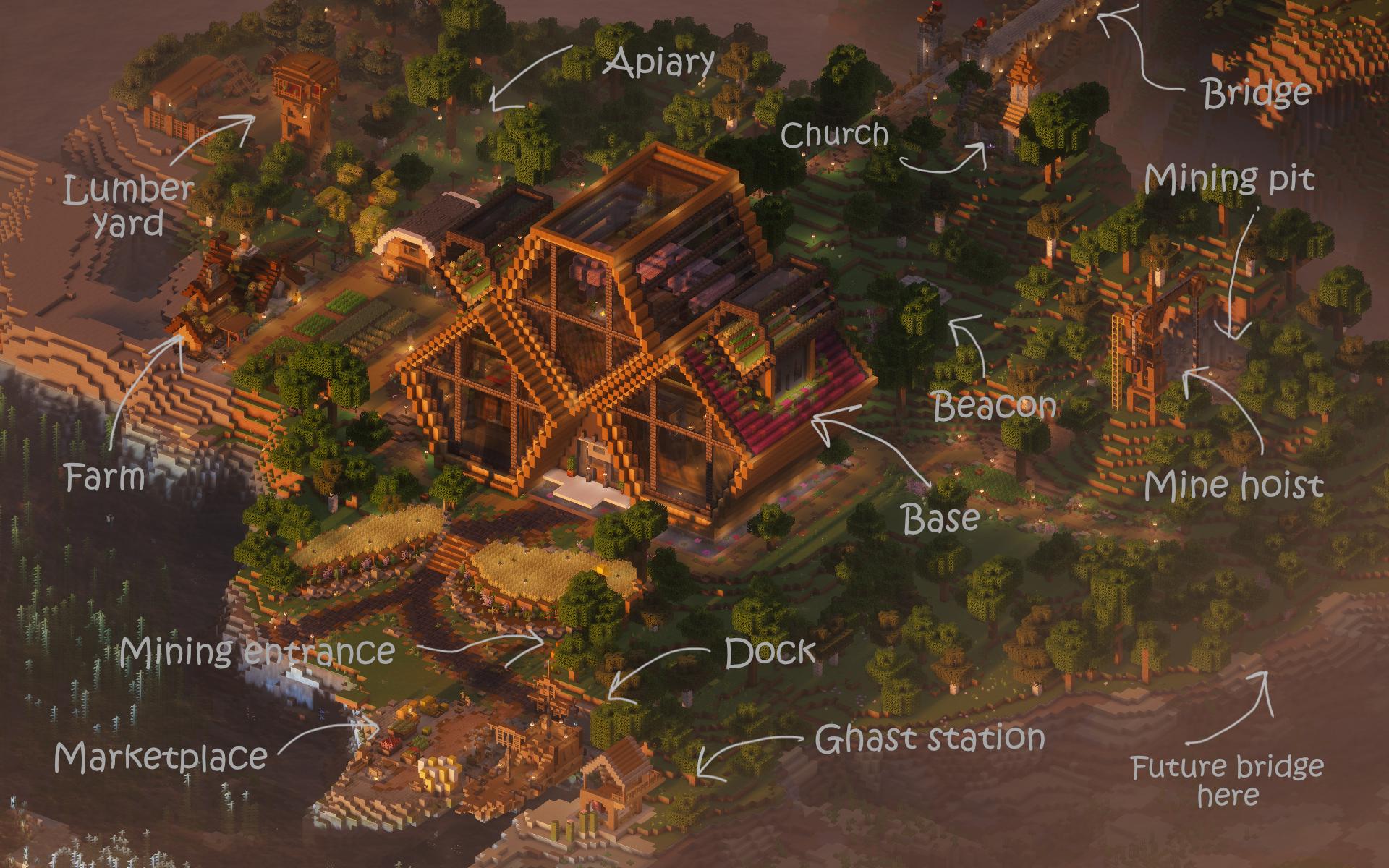 You probably won't believe my real-world job. But it does not allow me to play the game as much as I want to. There are times it would take 3 or 4 months before I can come back to my world. But when I do, I think of builds to add beauty and function to this world. The aerial view only tells half the story. The underground area is as busy as the surface with live moving minecarts (on loop but with randomizer) deep in the mines to simulate life. I take inspirations from Pinterest, much of the builds here are from Shera Nom. The main base is also a pinterest post, but I have no idea who owns the original build, not even the dimensions, interiors or exact materials. I don't use world editing tools or schematics; I prefer trial and error. I am alright with tearing builds down when I need to change it. This area has become OP in a survival sense, with materials enough for me to survive the next two years of gameplay, and I may need to start building somewhere else to feel the need to gather resources. Wherever, whenever that will be, this base island will forever be my home.