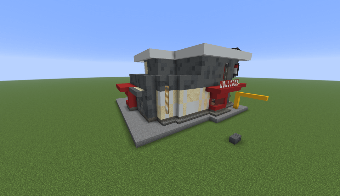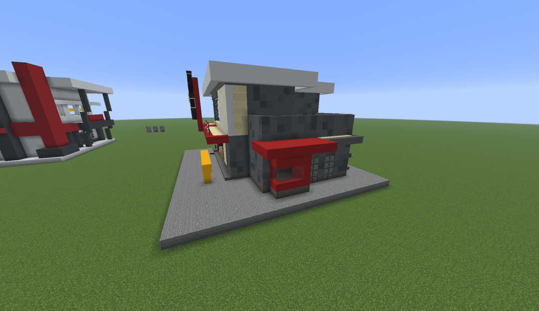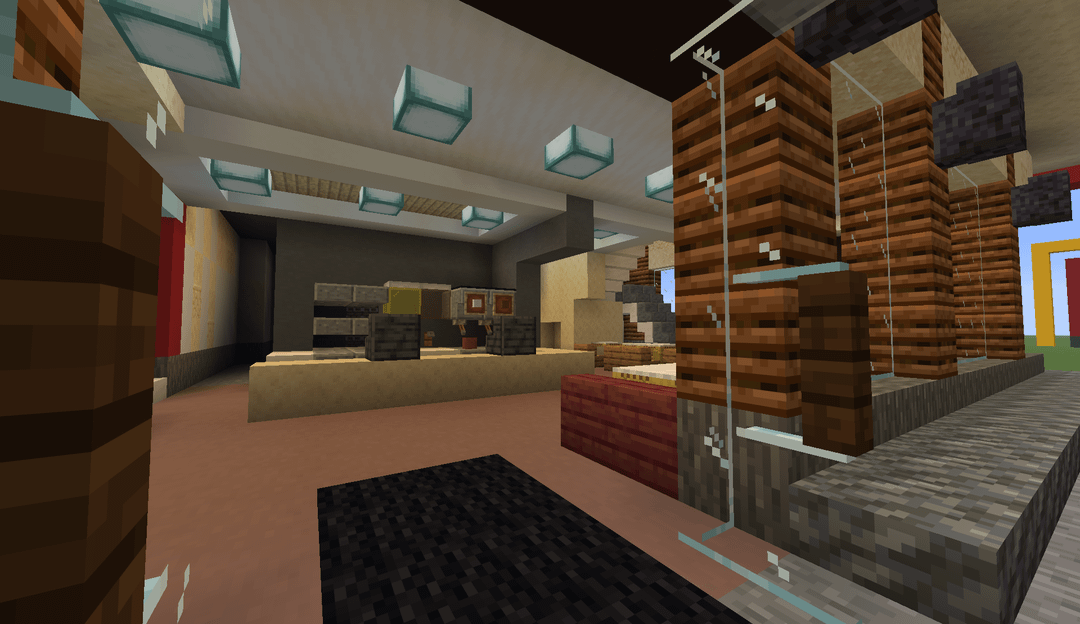 So I went with using composters, and also added some textures to the sand-colored and gray parts of the build, and added some 1st floor interior.