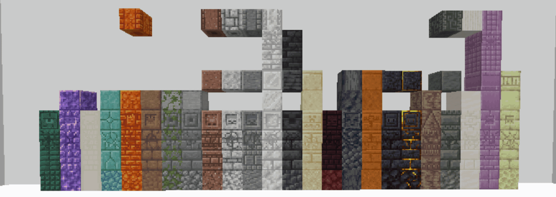 And Blocks: i have added over 80 new smooth, chiseled, polished and brick variants of existing blocks like dripstone and calcite that have minimal usage! While also bridging existing variants like Endstone and Purpur, this list will continue to grow so dont fret… if theres a block you like, it will most likely get a brick version.