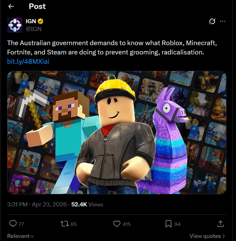 Okay? As an aussie, I understand roblox, but Minecraft and Fortnite? What?