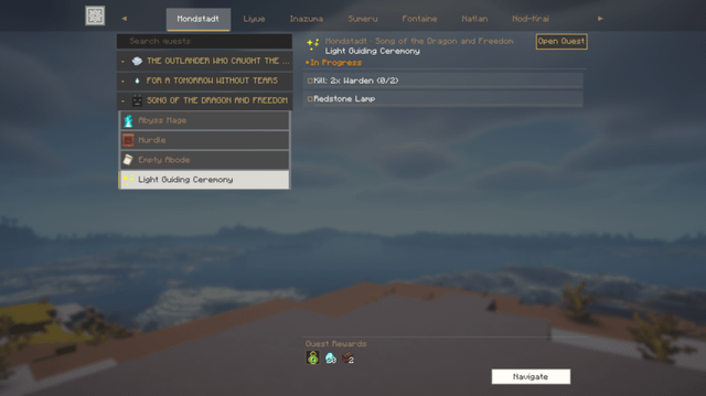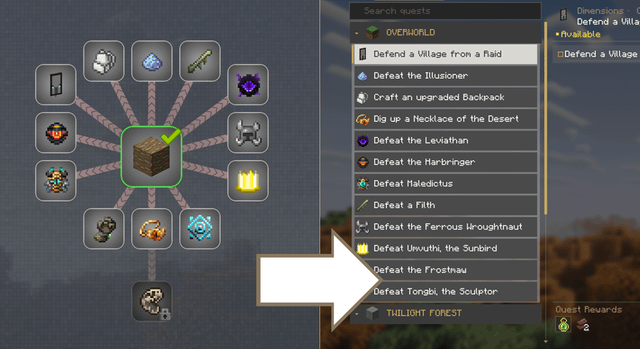 GUI – This is the UI that displays chapters and quests in FTB Quests. You can check available quests, submit items, and claim rewards. (default: J)
