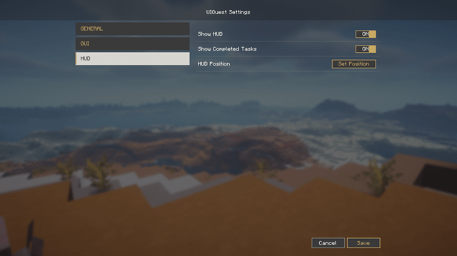 HUD – You can display the quest you are currently navigating on the screen. You can submit items or obtain rewards using the control keys. (default: K)