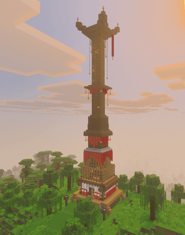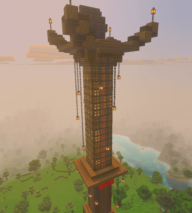 I wanted to create an elytra launcher for my survival world, and I decided to repurpose it as a Skyview Tower from Tears of the Kingdom, so it would launch people from the bottom to the top the same way as in the game. I like the final result, even though it lacks some of the red details from the original. I couldn't find any way to make them work, so I would love to hear any sugestions.