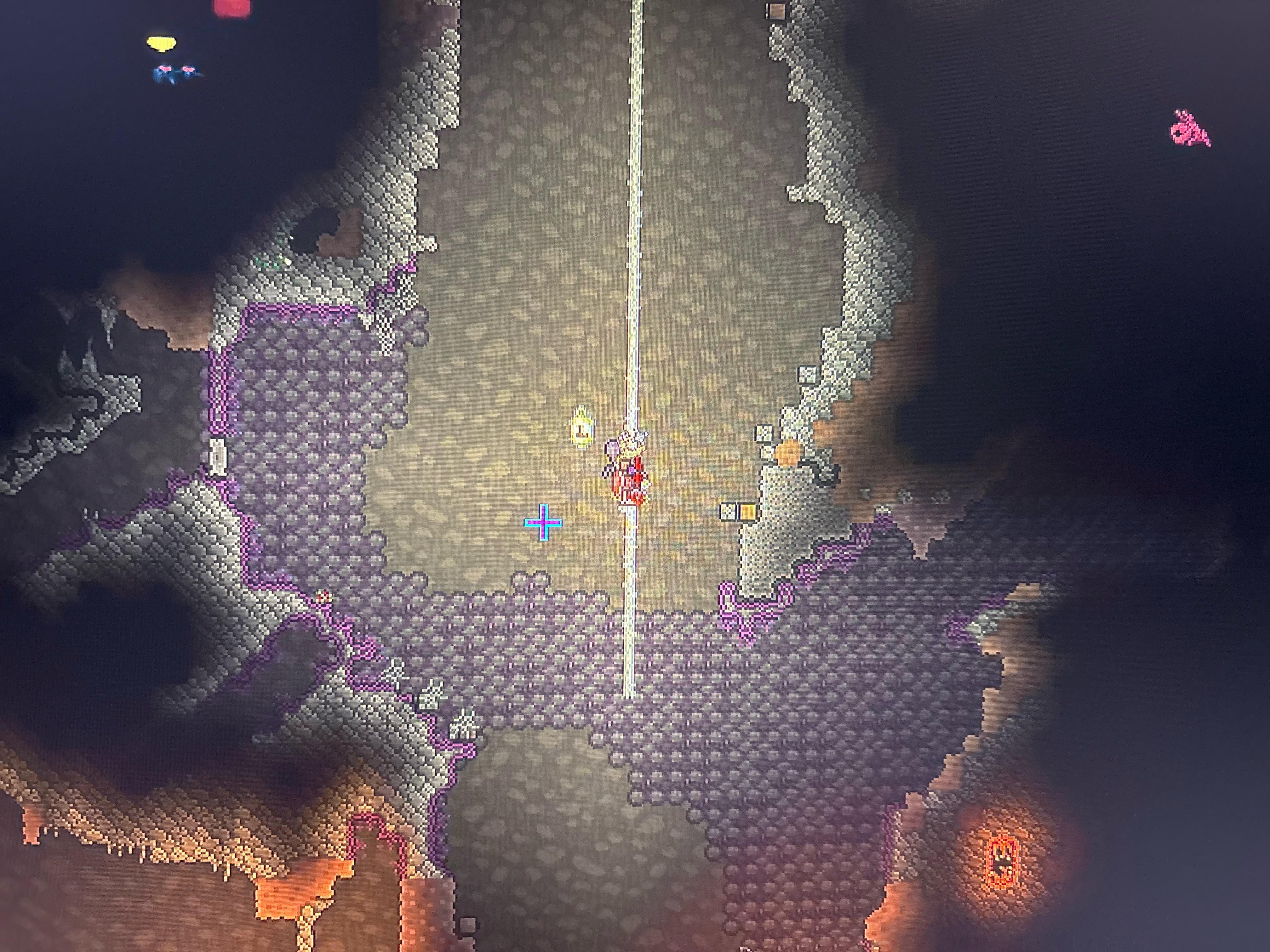 Can anyone tell me what this purple stuff on the stone is? Is it some kind of coruption? Does it spread and it it dangerous? by sketchysk Terraria