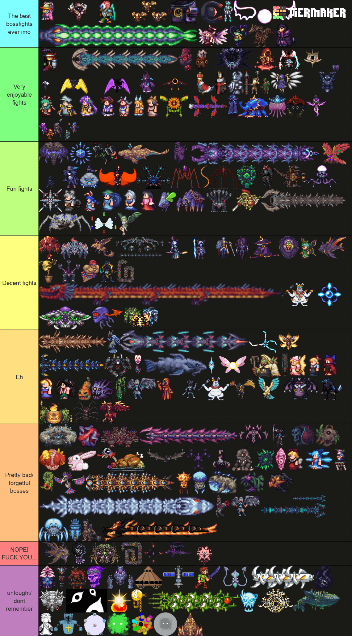 Excluded elements unleashed , ultranium and dormant dawn cuz I can't find images for those bosses…