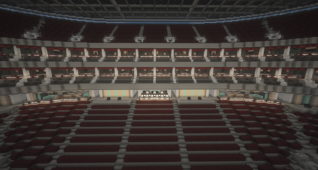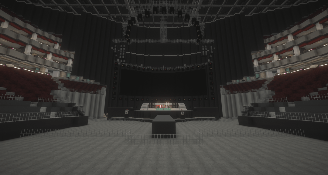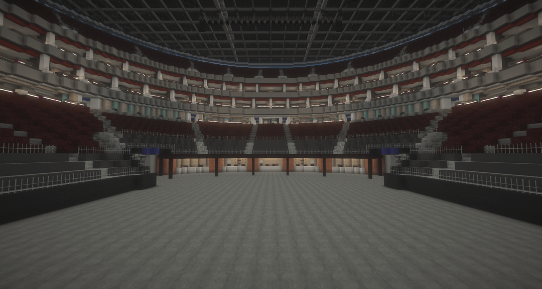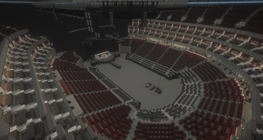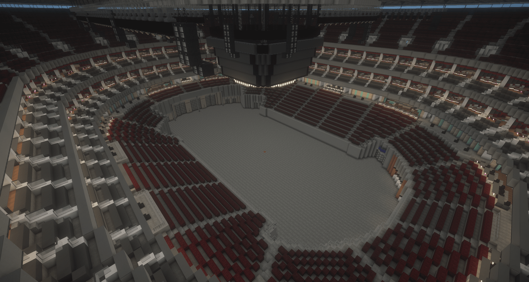 The seating setup is primarily inspired by the O2 Arena in London, then combined with multiple other real life arenas.