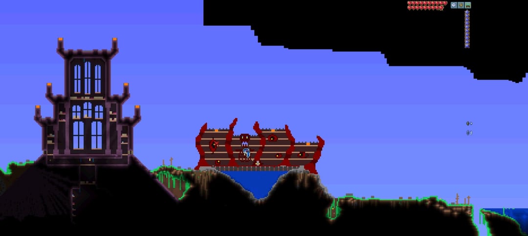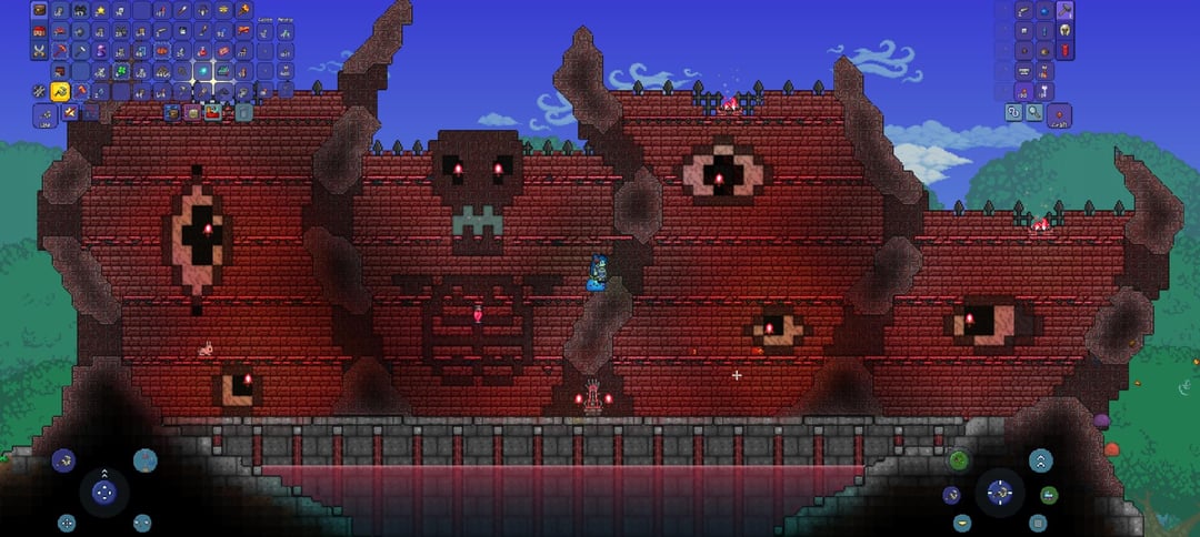 Im planning on fighting skeletron multiple times in Mastermode to get both the thropy and relics. I rabdomly decided i wanted to fight him in a cool arena, so i spent 7 or so hours trying to build something decent and ended up with this. And I know it's a but impractical with the pillars blocking a lot, but I'll actuate those later