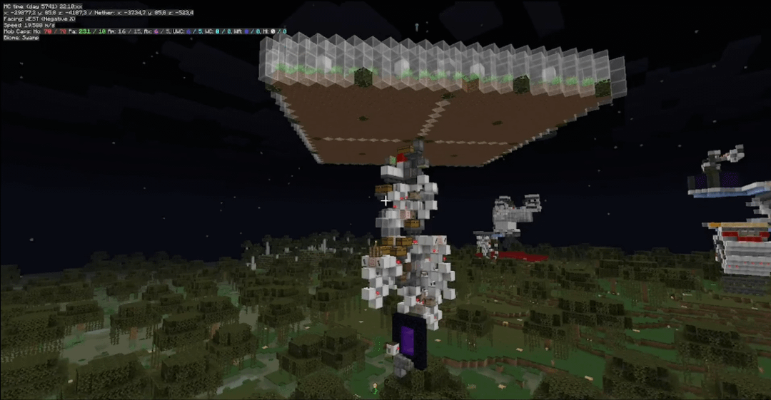This is also in the Witch kingdom in my single player world, since it has villagers then it requires a lightning rod so they don't turn into witches, so I made a flying broom design with a with haha. (They don't die since they drink fire resistance potions and healing potions, so it works haha)