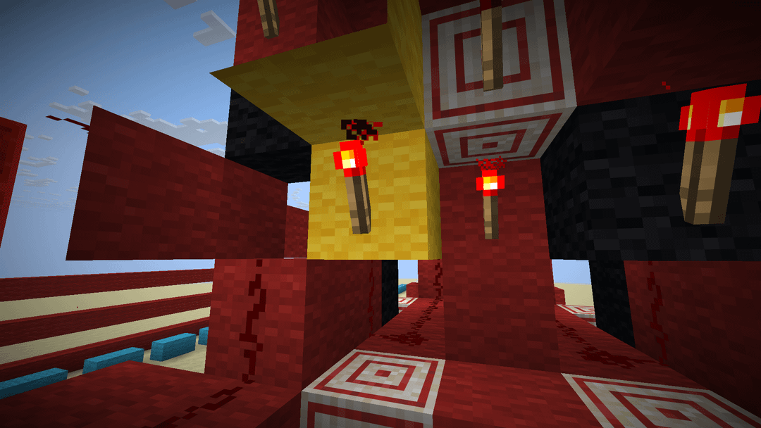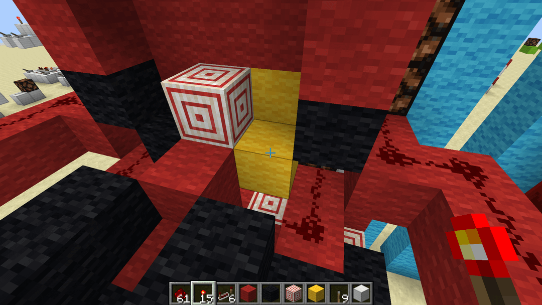 I am struggling with powering the Yellow wool block I am looking at. The purpose is to toggle the redstone torch on the other side. I am struggling to think of a way to power this block, with my space limitations. Is there a way I can power a block from ontop?