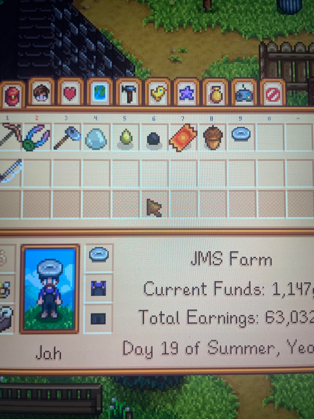 I went out to my backyard to look around at my irl garden this afternoon and saw a clover patch, so I decided to see if I could spot a 4 leaf clover. I found a 5 leaf clover instead, which I had never heard of happening. Later I decided to hop back on my casual Stardew playthrough and the luck showed itself like I’ve never seen before.