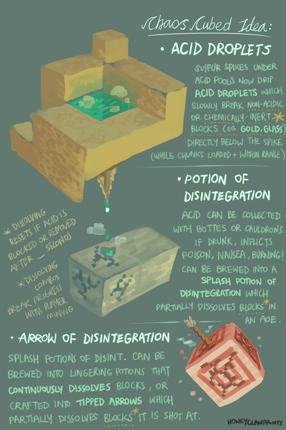 Only thing I don’t like about this is how theoretically the acid droplets could just infinitely dissolve the terrain and make chasms that lead to bedrock, unless the droplets have limited ranged