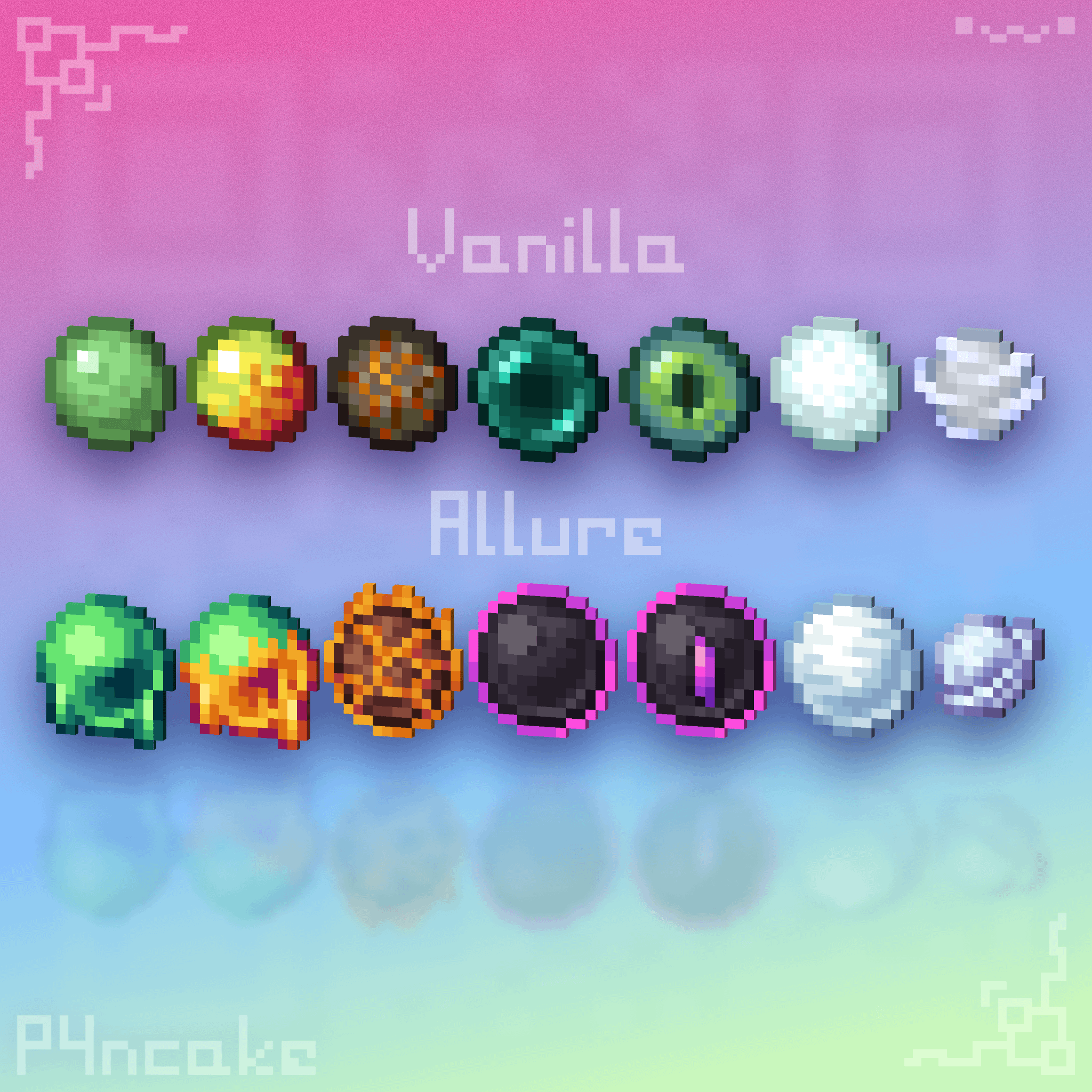 I prefer the original ender stuff, especially since the yellow in the ender eye makes it look like you actually put blaze powder in it, since that’s the crafting recipe for it. I can see what you were going for with the purple and it does look good, but idk, I always liked the semi-transparent look of the ender pearl and I think that works well with the eye.