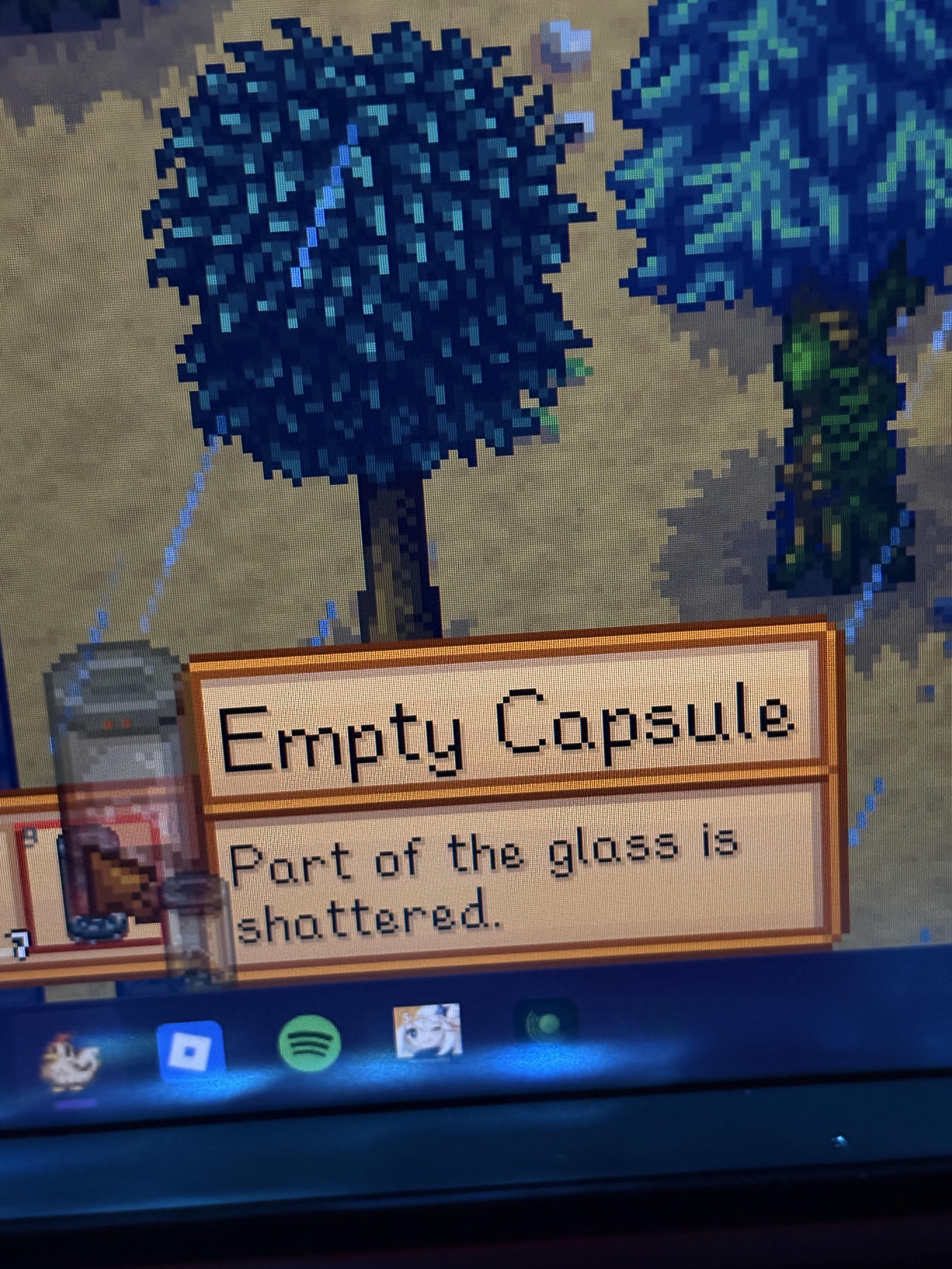 After he cracks out… he just becomes a rarely spotted creature darting between things quickly. Like squirrels and raccoons and other animals. You can’t interact with it and it never really comes into the game as anything beyond that. I’ve seen it at night running between the tree below Hayleys house and Krobuss sewer AND running up by the bus. He just looks like a shadow man-thing outline.