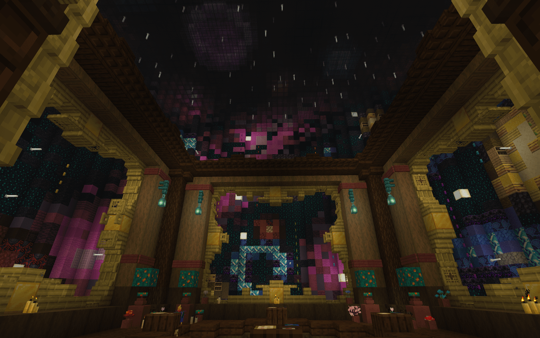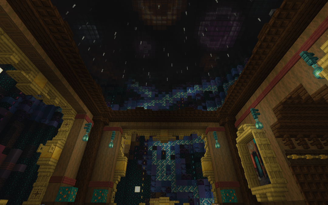 I added "planets' to my infinite galaxy. Using different colors of glass, I added spheres broken down by each glass layer, then, for some, on the top layer (or thickest layer), I added froglights or sea lanterns. If you haven't seen the normal night sky trick, it's layers of black glass with one gap of air between each layer, with endrods placed faced down. Also peep my 'Galaxy' room, I'm using this trick in! Cheers!
