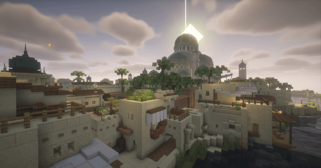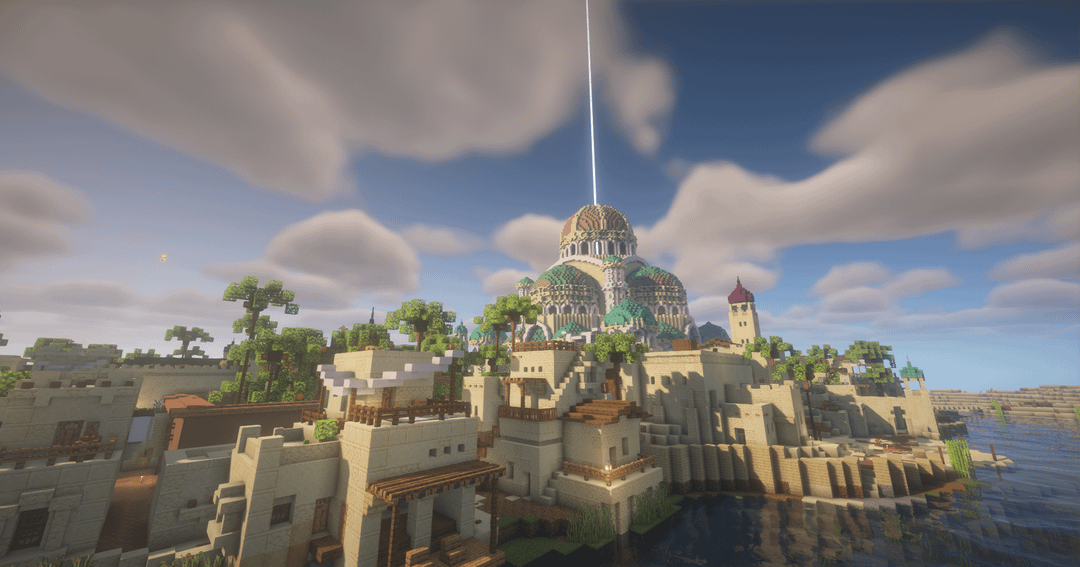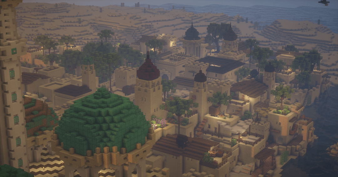 For the mosque, I drew inspiration from the overall design of a build I saw online, but I can't seem to find it now, so I can't give credit where it's due. by Patatoradis Minecraft Minecraft Builds