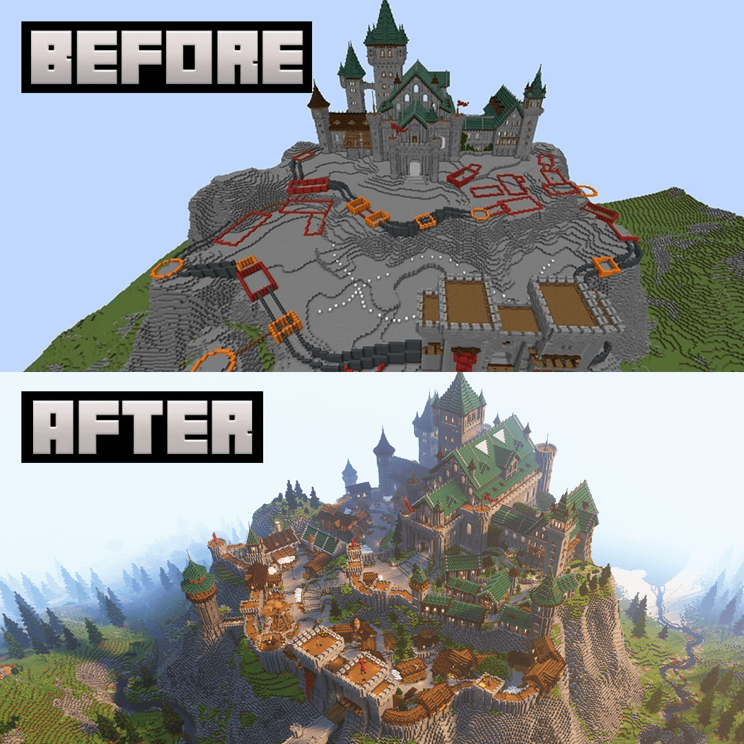 The castle from our 2000×2000 medieval kingdom map! How do you like it? by pixelbiesterofficial Minecraft Minecraft Builds